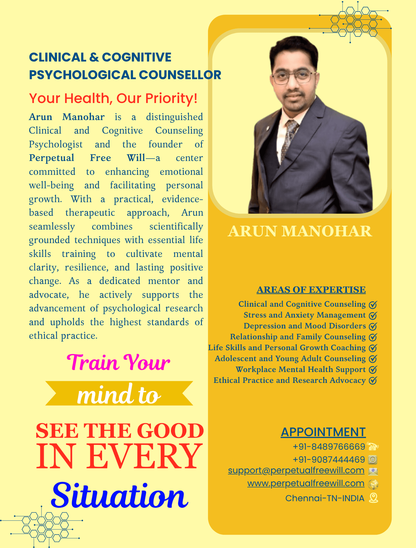 Wide Range of Services – From individual therapy to couples counseling, career guidance, and stress management.